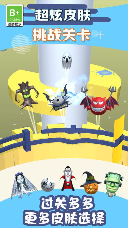 1、皮肤选择丰富多样,游戏内所有未锁定皮肤均可自由选用,玩家能根据喜好定制小球外观,增添个性化游戏体验。