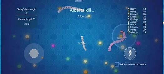 滑行贪吃蛇游戏是一款卡通风格的休闲游戏,游戏始于一条小巧的蛇,你的任务是在每一个紧张刺激的关卡来不断的进行吞噬,让你自己能够来不断的进化,你可以来不断的提升自己的身躯,并且上演更精彩的操作,你的目的就是在游戏中来获得更高的分数。