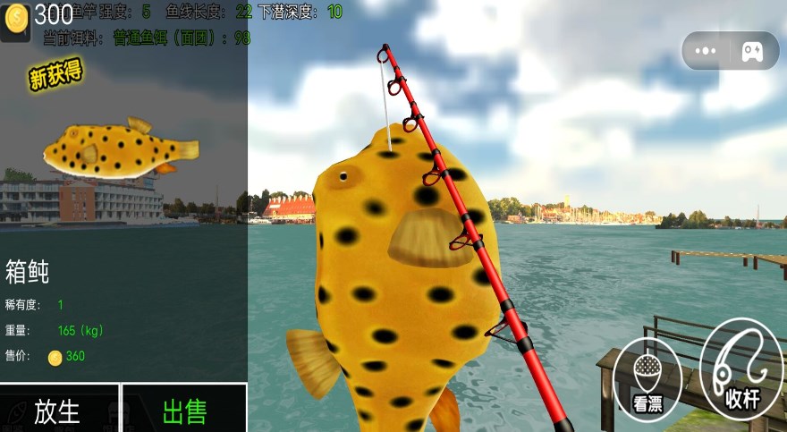3、钓上来各种类型的鱼,解锁各个成就称号。